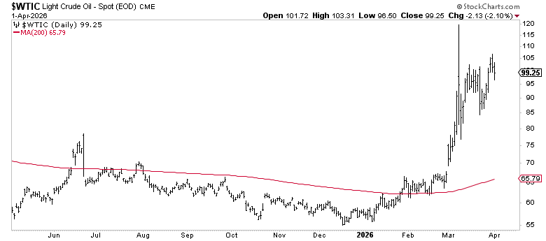 Oil. WTI at $99 is a tailwind for energy names but a headwind for margins and the consumer. A sustained break above $100 introduces a new variable into the inflation and earnings picture.