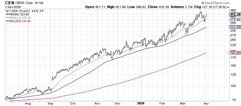 Ciena (CIEN) — $415.39, YTD +77.6%