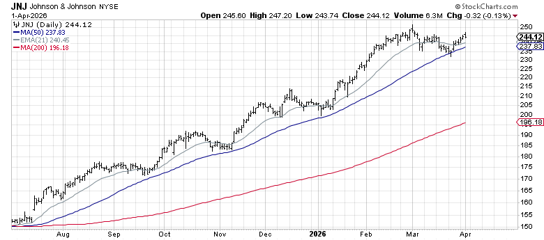 Johnson & Johnson (JNJ) — $244.12, YTD +18.6%