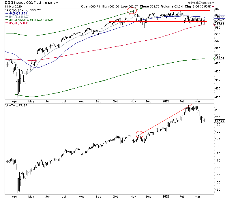 Chart 3: QQQ vs VTV — Growth vs. Value
